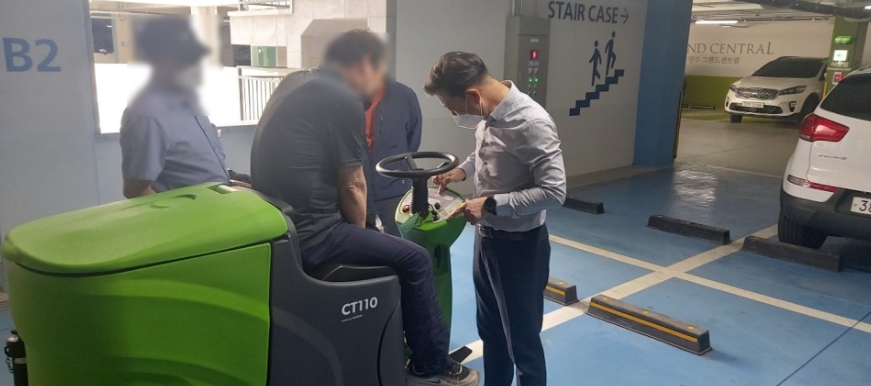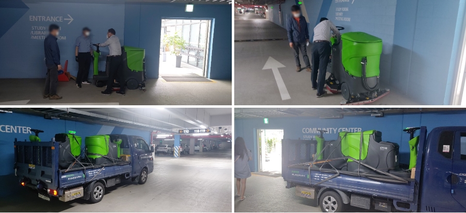 이런 현장상황을 전해듣고 기존에 인력에 의존하는 청소에서 탑승식 청소차 1대로 인력을 대체하는것을 추천드렸습니다.