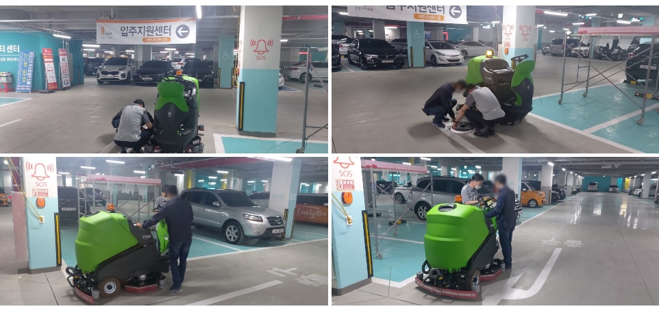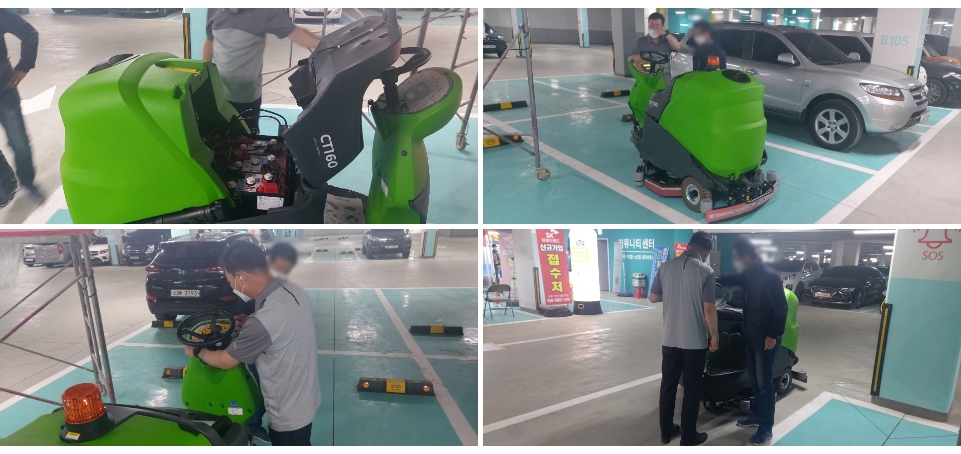 ?또한 탑승이 가능하고 탑승을 하신 상태로 주차장을 누비며 바닥을 청소를 하는 방식이기때문에 지루하지 않고 편리한 청소가 가능하십니다.