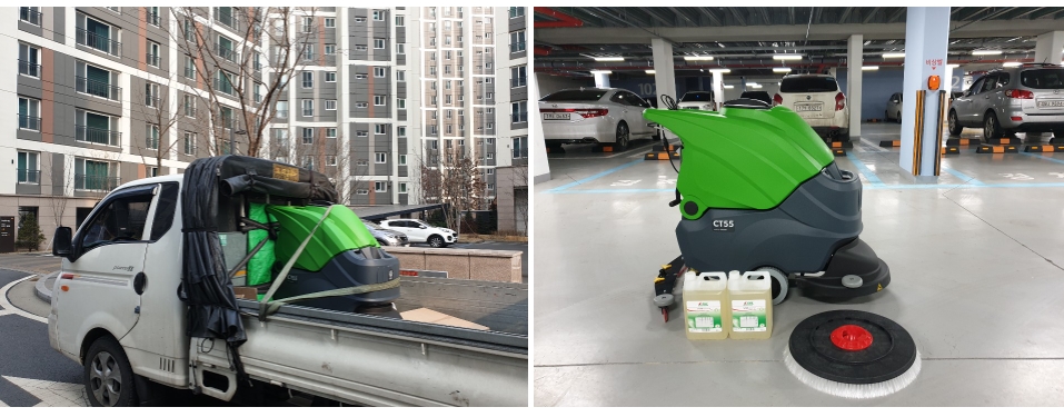 아파트 청소장비가 현장으로 도착을 하였습니다.