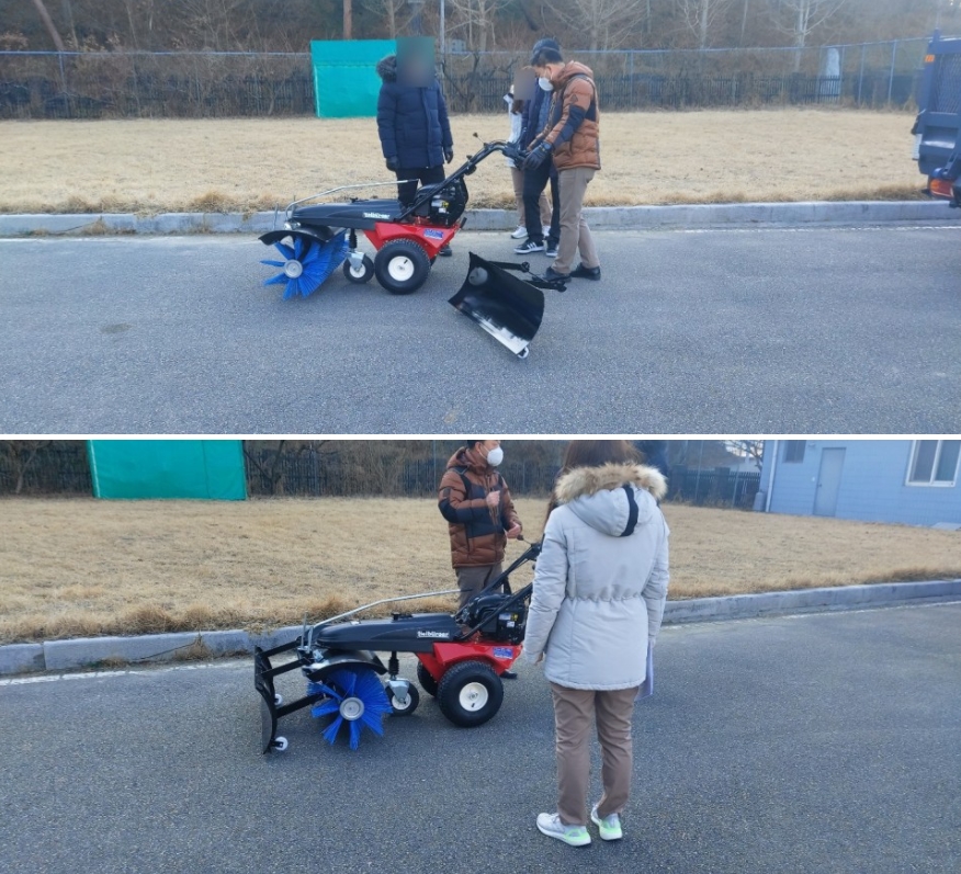 제설작업 뿐만 아니라 다목적으로 사용도 가능합니다.. 잔디깎기, 사계절 브러쉬, 보행식 제설기, 등 가능해요!