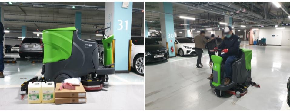 나중에 다른 문제가 생겼을 시에는 어떻게 대처해야하는지 하나부터 열까지 알려드렸는데, 조작이 쉽고 사용하기 편하다보니 관계자분들 대부분 금방 이해 하시고 쉽게 탑승식 청소장비를 다루실 수 있답니다!