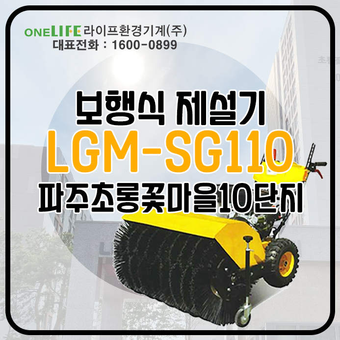 이번 라이프환경기계에서는 보행식제설기 LGM-SG110 를 파주초롱꽃마을10단지에 납품해드렸습니다. 지금부터 보행식제설기 LGM-SG110 와 납품 현장을 소개해드리도록 하겠습니다.