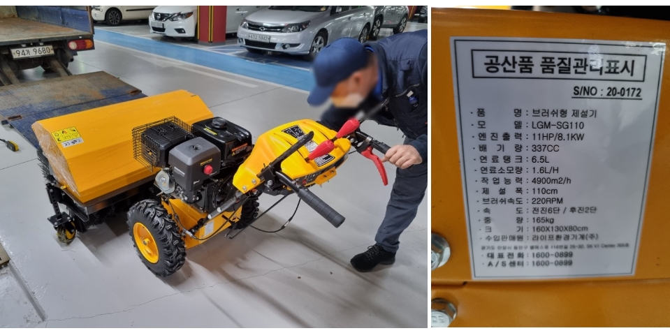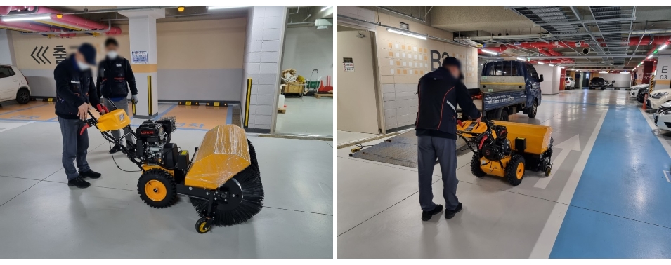 LGM-SG110 겨울철 제설기는 보행식 브러쉬형 겨울철 제설기로도 인기가 많지만 건식 청소장비로도 많이 사용이 가능하기 때문에 이번 동남칸타빌더테라스 2단지에서도 겨울철 제설기 및 청소장비로 요긴하게 사용하실 것 같다고 굉장히 좋아하셨습니다~!