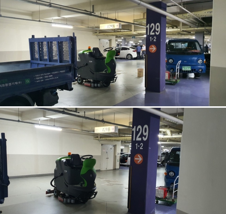 납품현장을 보시면서 이번에 납품한 바닥 청소장비에 대해,
