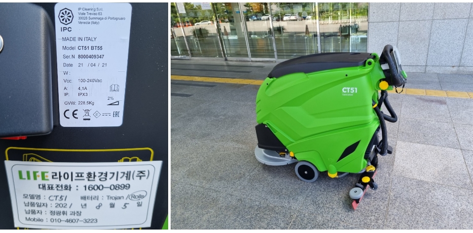 습식청소차 CT51B55 운행 영상입니다. 청소장비를 손으로 잡고 청소할 범위를 걸어다시기만 하면 끝입니다. 영상으로 보시니 정말 간단하게 사용을 하실 수 있다는 것이 보이네요. 세제도 골고루 뿌려지면서 바닥을 꼼꼼하게 닦기 때문에 바닥이 정말 깔끔해지는 것을 보실 수 있습니다.