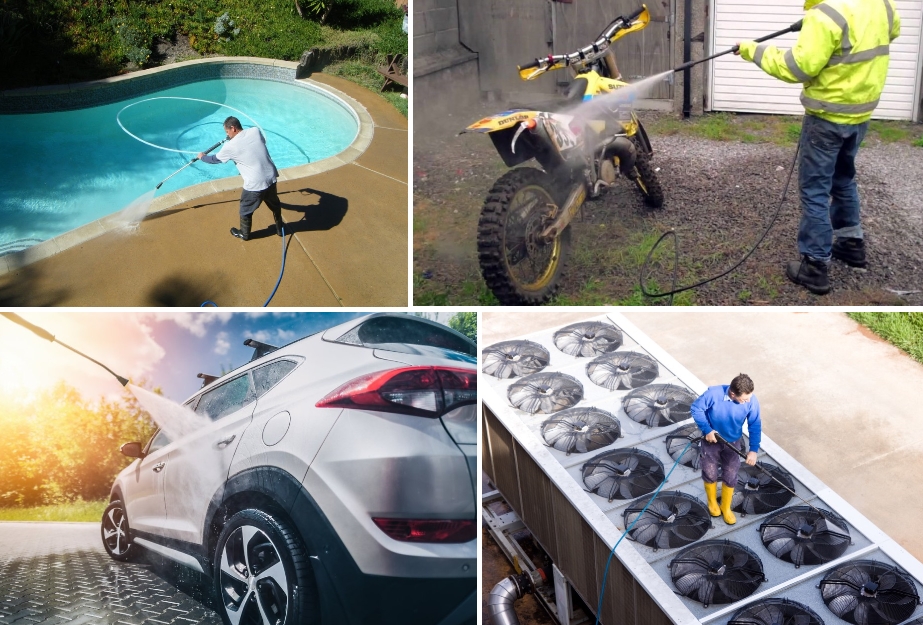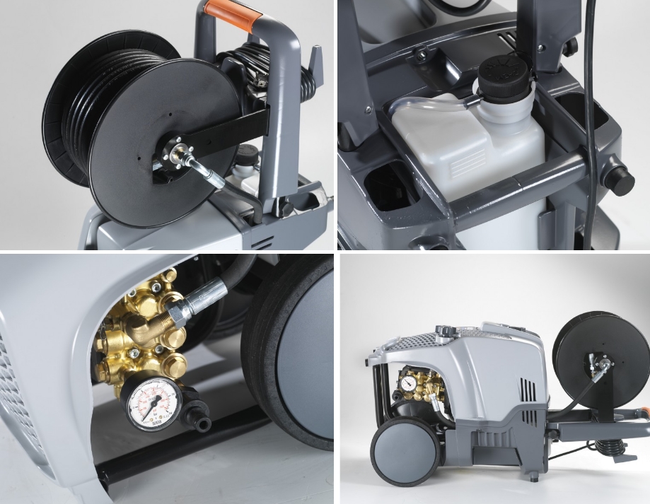 220mm의 대형 이동용 바퀴가 탑재되어 이동이 편리하고 수직과 수평을 자유롭게 사용할 수 있다는 장점이 있어 건물 외벽청소, 바닥 세척, 각종 장비 및 기계의 세척, 차량 세척에 적합한 장비입니다!
