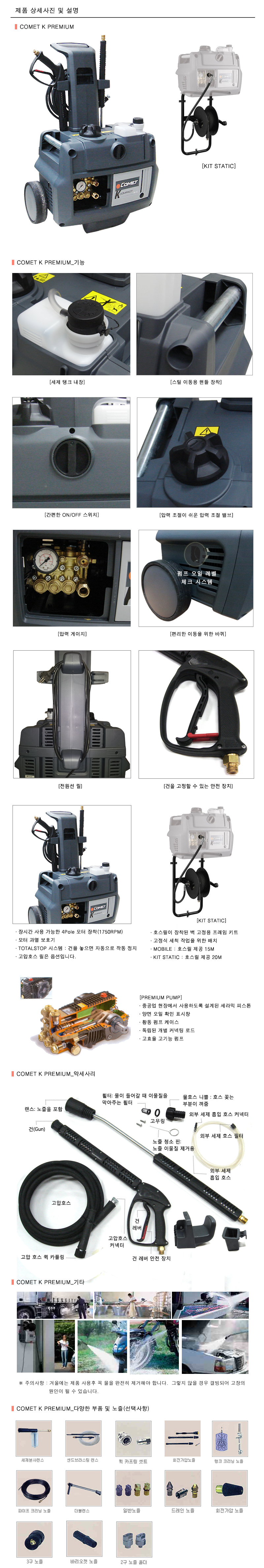 고압세척기는 장시간 사용이 가능하고 2pole 모터 장착을 지니고 있습니다. 특히 건을 놓으면 자동으로 작동이 멈추는 기능도 있습니다. 제일 중요한점은 겨울철에 사용하실 때는 반드시 제품 안에 물을 빼주셔야 합니다. 간편하게 on/off 스위치 사용이 가능합니다.