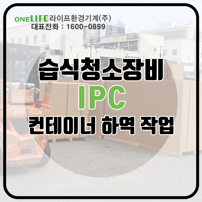 IPC 습식청소장비컨테이너 하역 작업 현장 사진입니다.