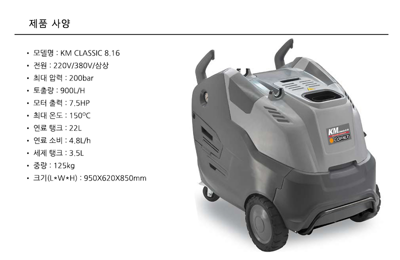 KM CLASSIC 8.16 삼상 (200bar,900ℓ/h)